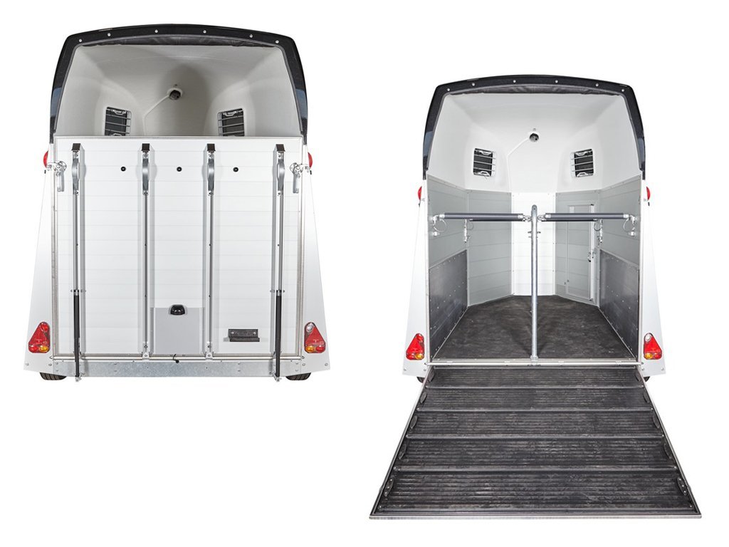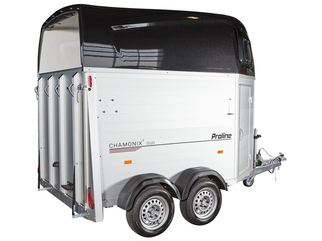 Met de Proline Chamonix 2-paards paardentrailer vervoer je jouw paarden niet alleen stijlvol, maar ook gemakkelijk! De robuuste trailer, die ruimte biedt aan twee volwassen paarden, wordt standaard voorzien van een neergaande achterklep, zijdeur en volkern kunststof vloer. De trailer is ruim opgezet, heeft een laag eigen gewicht en heeft standaard trapbescherming, waardoor de reis comfortabel verloopt. De trailer kan uitgebreid worden met een zadelkamer, waardoor de ruimte optimaal benut wordt.