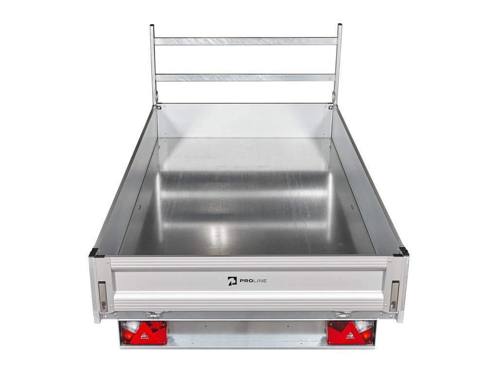 Wanneer u aanvullende accessoires voor uw Proline enkelas kipper nodig hebt, kunt u eveneens bij ons terecht. Afhankelijk van uw wensen is het meestal geen probleem om bepaalde extra’s aan de aanhanger kipper enkelas toe te voegen. Om de bak met nog minder inspanning te kantelen, kunt u de handpomp bijvoorbeeld laten vervangen door een elektrisch kiepsysteem. Verder kan een aanvullend of ander veersysteem onder de enkelasser kipper worden gemonteerd. Ook flexibele aanpassingen behoren tot de mogelijkheden. Om de wanden van de bak tijdelijk hoger te maken, kunt u er opzetborden of loofrekken bij kopen. Deze zijn eenvoudig te installeren en te verwijderen. Een voorrek voorkomt dat de lading tijdens het afremmen over de rand van de bak schuift. Andere opties zijn een vlakzeil, ladingnet, spanbanden of een SCM-gekeurd antidiefstalslot voor op de koppeling.